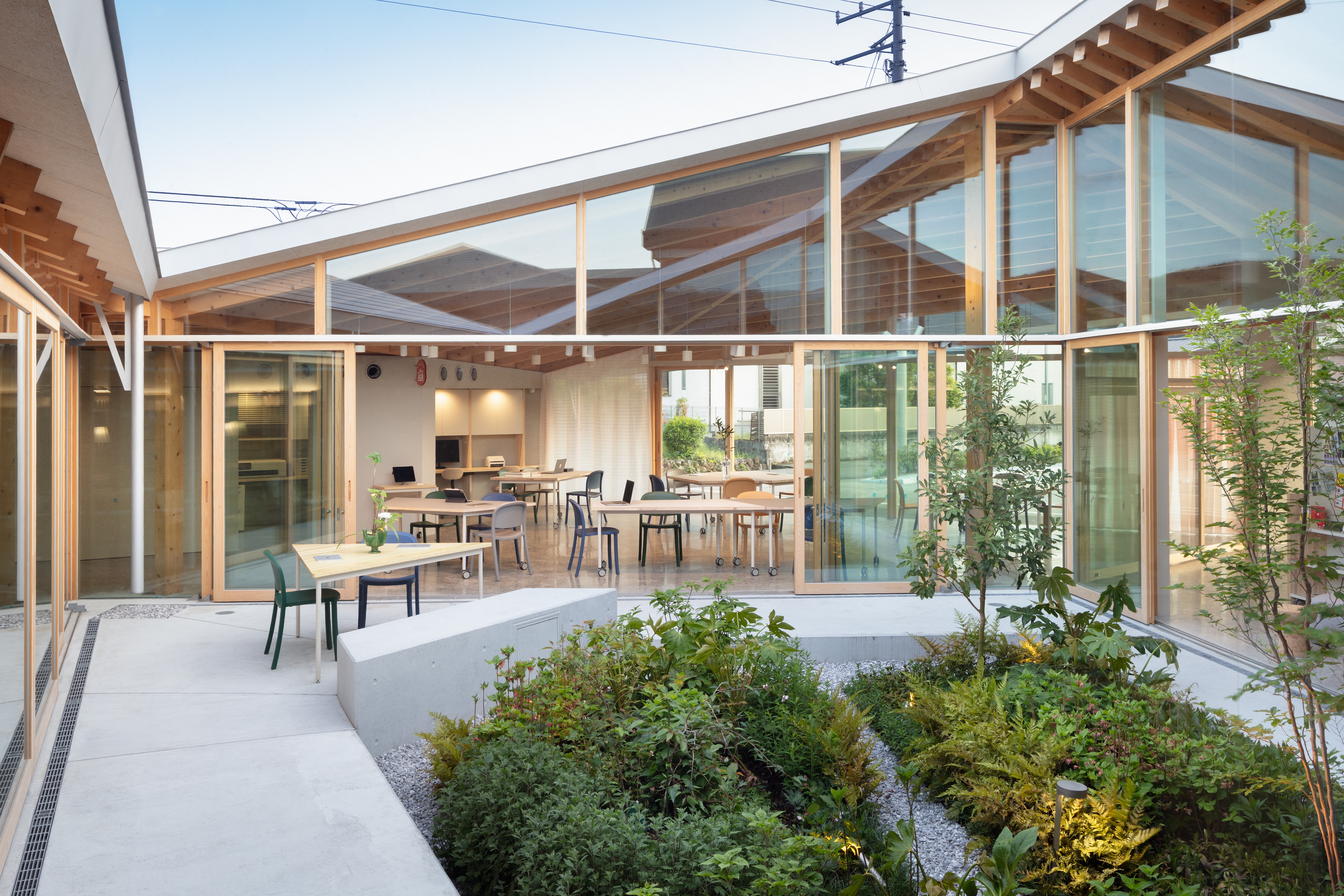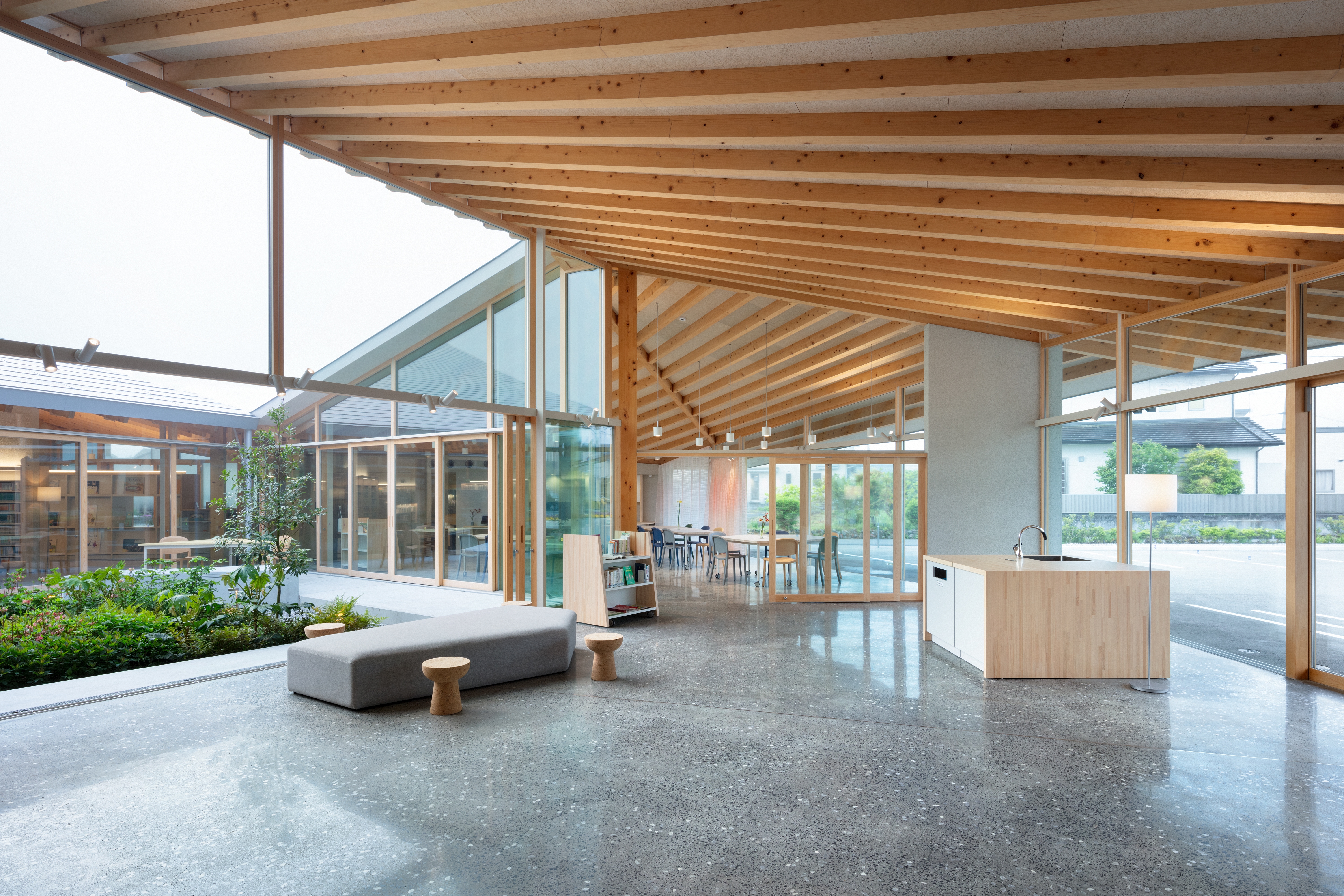 「佐川町立図書館さくと」は、高知県産ヒノキをふんだんに使った木の香りが心地よい施設です。高知の厳しい風雨に耐えうる深い軒や山並みに呼応するおおらかな屋根のデザインが特徴で、建物周辺には牧野博士ゆかりの植物が植えられています。